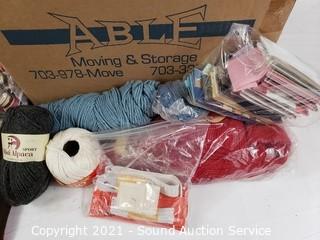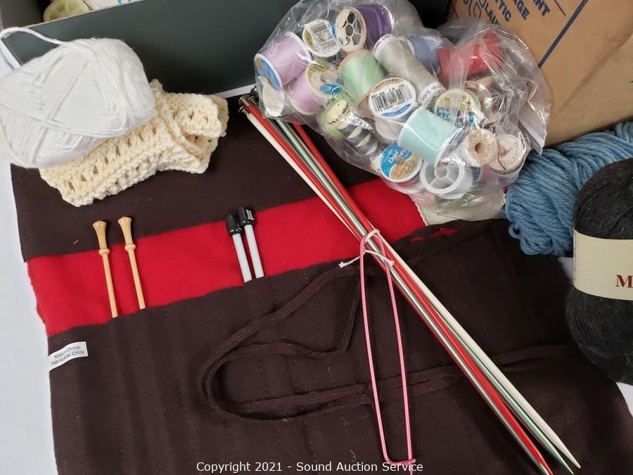 Lot Details: Yarn, knitting needles, needle threaders, thread and more.