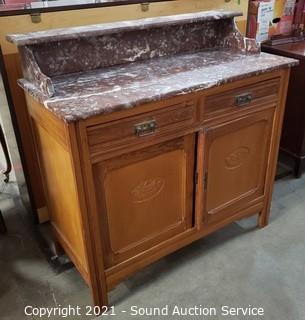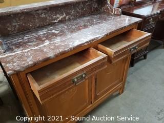 Lot #0034: Vintage Marble Top Buffet