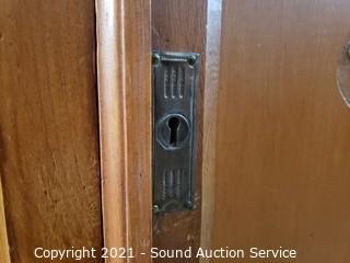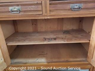 Lot Details: 2 drawers and lower cabinet, skeleton key locks, does not come with key. Top is damaged, refer to photos, could probably be repaired, all pieces are present. 41" x 42" x 19".