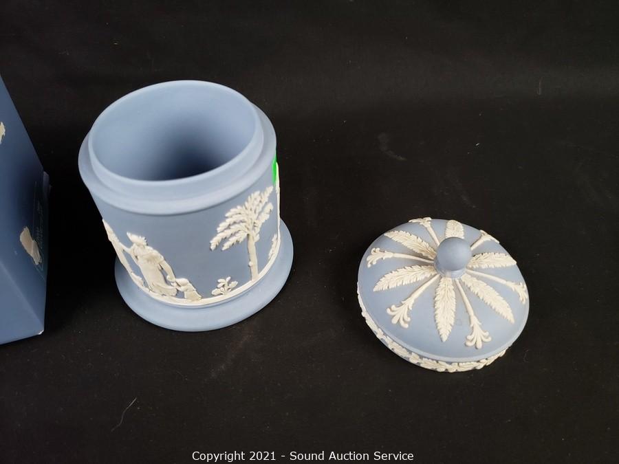 Lot #0214: Wedgwood Blue Athens Cigarette Jar