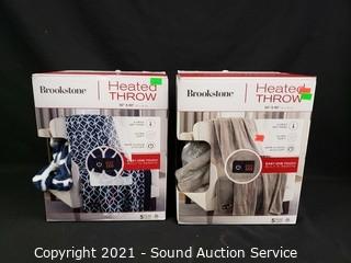 Lot #0098: 2 Brookstone Blue Plaid & Grey Plush Heated Throws
