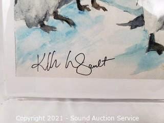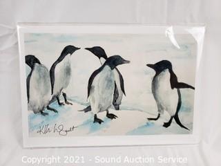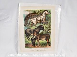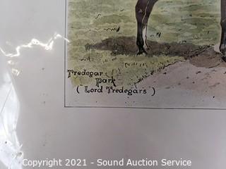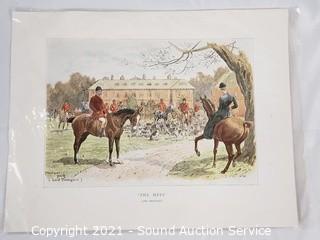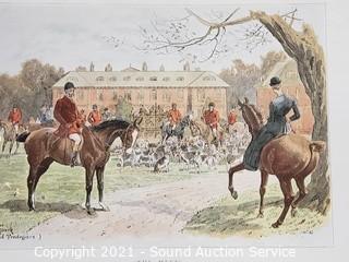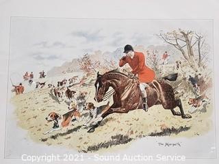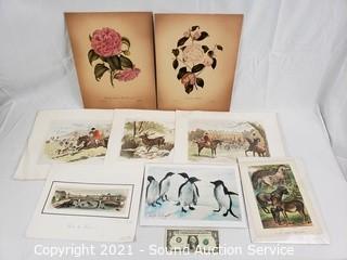 Lot Details: One is an original Penguin scene by Kathleen LeGault 8" x 12", Quagga Zebra Litho 7.5" x 10", C. Marville newspaper clipping, The Devon & Somerset "Hard Pressed" 15" x 12", Tredegar Park "The Meet" 12" x 15", Floral Litho by A, Chandler 12" x 15".