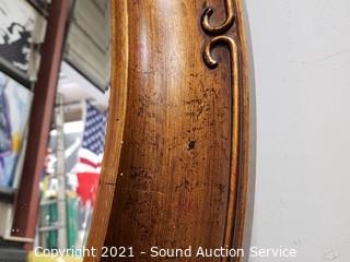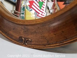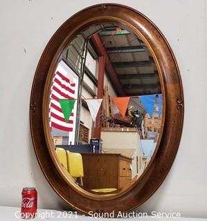 Lot Details: 38" x 27". In good condition. Golden plastic frame, beveled mirror.