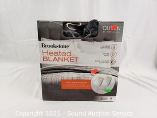 Lot #0137: Grey Brookstone Plush Queen Heated Blanket