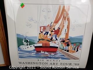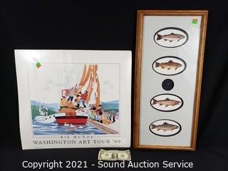 Lot Details: Nancy Littlefield Salmon Lithograph Collage 12" x 26". & Rie Munoz Washington Art Tour 19" x 21" lithos.