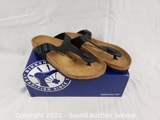 Lot #0033: New Birkenstock Gizeh Black Sandals S: 9