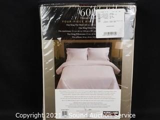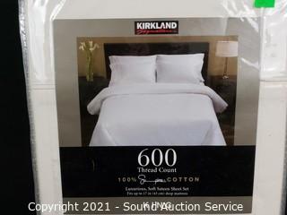 Lot Details: 600 thread count, 100% cotton. Factory sealed. 1 flat, 1 fitted, 4 pillowcases.