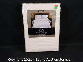 Lot #0134: New Kirkland 6pc King Ivory Cotton Sheet Set