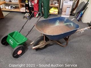 Lot #0008: Steel Wheelbarrow & Scotts Seeder