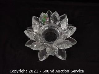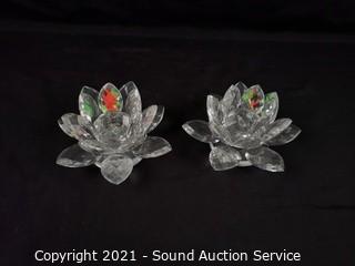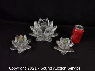 Lot #0139: 3 Crystal Prism Lotus Flower Candleholders