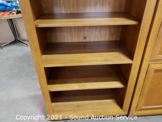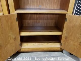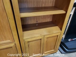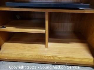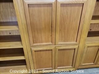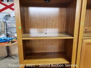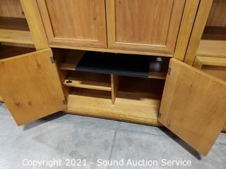 Lot Details: Fits a 28" W x 25" T TV, built in power supply. Overall 78.5" H x 100" W x 18" D. 32" and 36" long individual sections.
