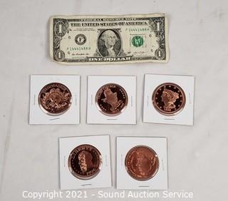 Lot #0072: (5) 1oz .999Fine Copper Medallions