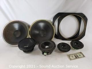 Lot Details: Two 12" & two 12" surrounds, The Punch & Polk Audio 6" speakers, & two 4" speakers. All work.