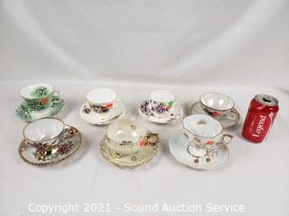 Lot #0140: 7 Vintage Fine China Teacups & Saucers