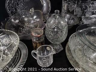Lot #0351: Assortment of Crystal & Clear Glass Tableware