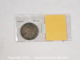 Lot Details: 2000 Republic of Liberia Millennium Coin, 1967 Old Mexican silver dollar, Japanese, Argentina, Italian & other foreign currency.