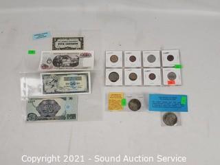 Lot #0045: Assortment of Foreign Coins & Paper Currency