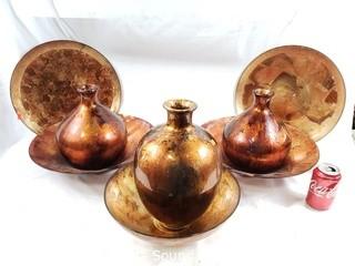 Lot #0360: Golden/Copper Chargers, Vases & Bowls Decor