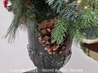 Lot Details: Ceramic construction, faux decor, 28" x 16" diameter. Has a chip and some wear to the finish, refer to photos. Works.