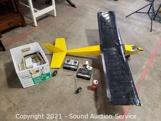 Lot #0258: Model Balsa Wood RC Airplane w/Controllers