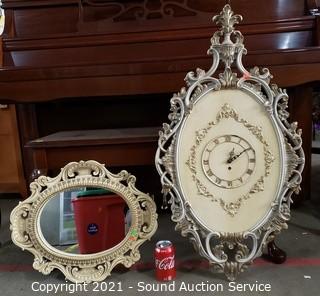 Lot #0149: Ornate Gilded Wall Clock & Mirror
