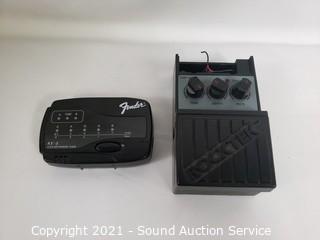 Lot Details: Comes with Rocktek foot pedal and tuner. Some minor cosmetic issues, refer to photos. 12" x 13.5" x 7". Amplifier works, foot pedal is untested.