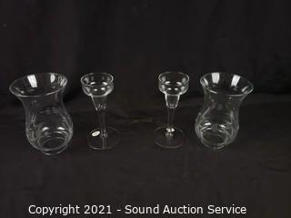 Lot Details: 3 Oil lamps, 2 Candlesticks, 4pc Hurricanes.