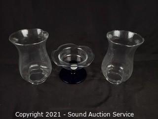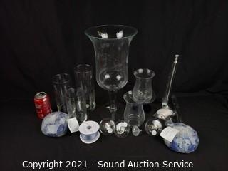 Lot Details: All with original boxes. 5 oil lamps, 2 boxes of filler glass, 1 candleholder, 2 7" hurricanes, 3 Cylinders, 16" hurricane.