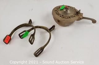 Lot #0157: Zippo Lighter, Ulu, Spurs & Other Trinkets
