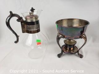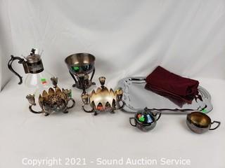 Lot Details: Refer to photos for hallmarks. Cream and sugar, candelabras, pitcher with warming dish and tray.