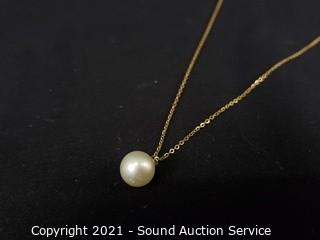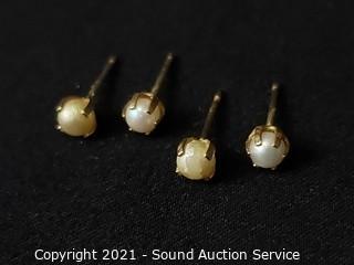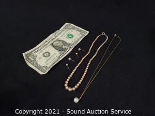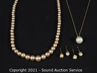 Lot #0140w: 14k Gold & Genuine Pearl Earrings & Necklace
