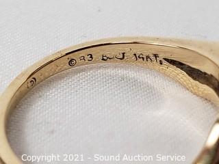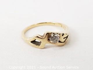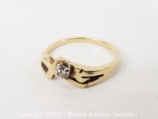 Lot Details: TW: 2.7g. Clear stone set, could not get the stone to test. Signed on the inside and has a makers mark (hard to make out) dated 83?.