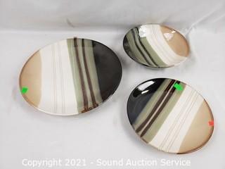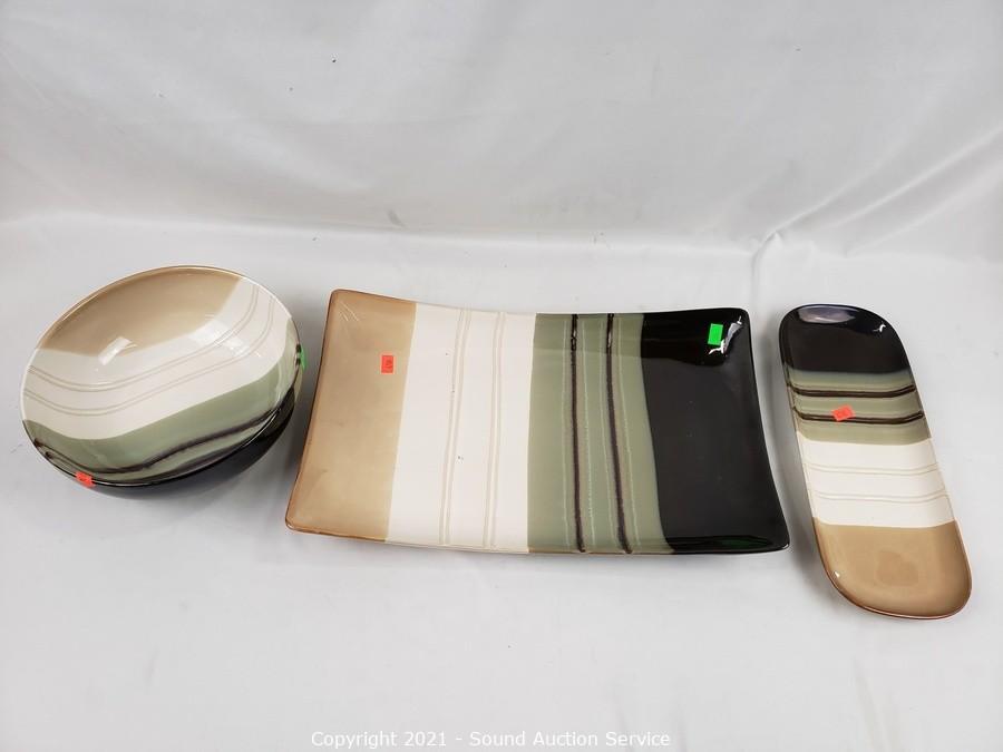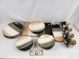 Lot Details: 4 mugs, 4 dinner plates, 4 snack plates, 4 bowls, 8" serving bowl, 5x12" & 10x16" platters.