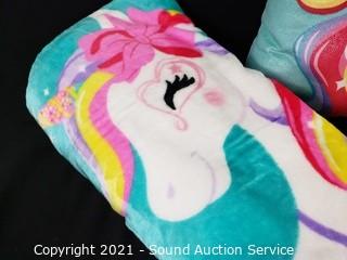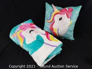 Lot #0371: 2pc Unicorn Character Pillow & Oversized Throw