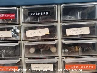 Lot #0076: 36 Drawer Hardware Organizer w/Hardware