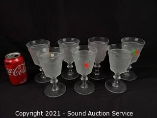 Lot #0071: 7 Elk & Cabin Frosted Stemware Glasses
