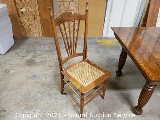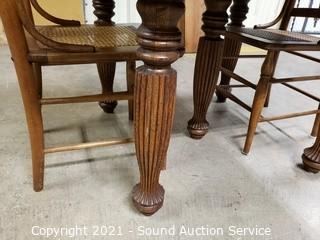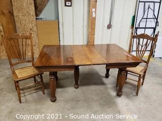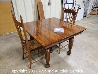 Lot #0052: Antique Oak Dining Table w/2 Cane Bottom Chairs