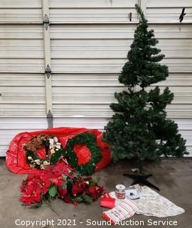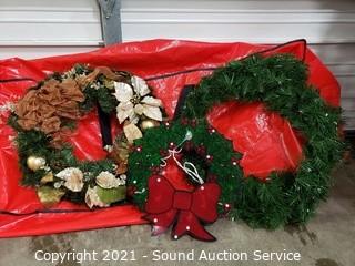 Lot #0391: Artificial Christmas Tree, Wreaths w/Storage bag