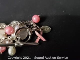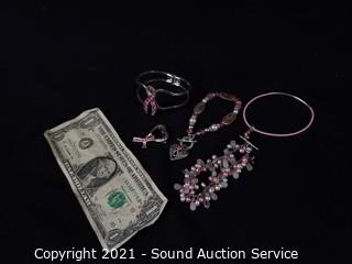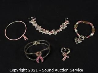 Lot #0228w: Breast Cancer Awareness Bracelets & Pin
