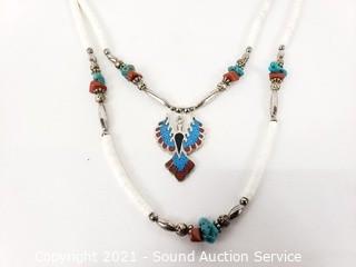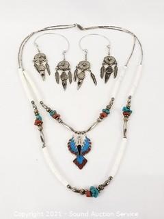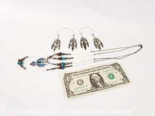 Lot #0383: Native Layered Eagle Necklace & Earring Loops