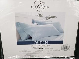 Lot #0358: New Charisma 6pc Light Blue Queen Cotton Sheet Set