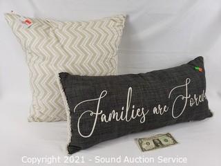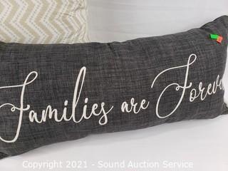 Lot Details: "Families are Forever" 10" x 24" & white & beige 18" pillow.
