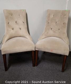 Lot #0028: Pair of Taupe Fabric Tufted Accent Chairs