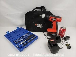 Lot #0064: Socket Drivers Set & Black & Decker 14.4v Drill