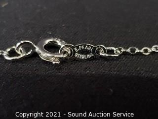Lot Details: TW: 14.7g. 16" chain. Necklace and earrings marked "E.Pearl".