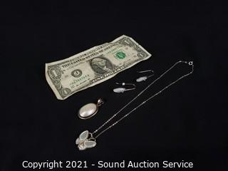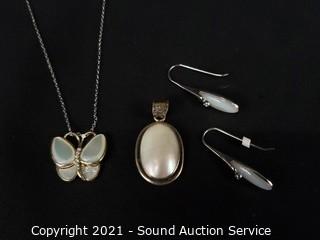 Lot #0382: Sterling & Mop Earrings, Necklace & Pendant