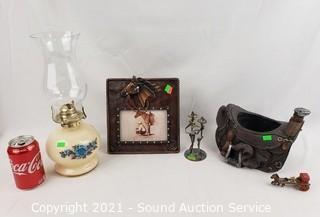 Lot #0093: Vintage Oil Lamp & Western Decor