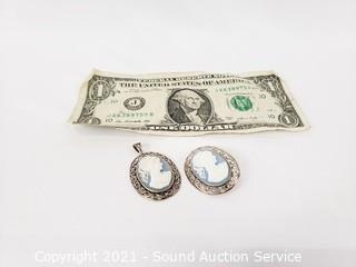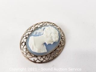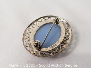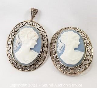 Lot #0334w: Vintage Sterling Cameo Pendant & Pin