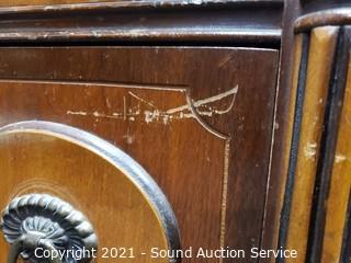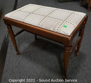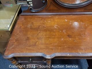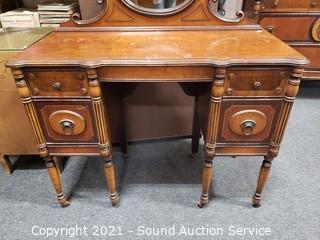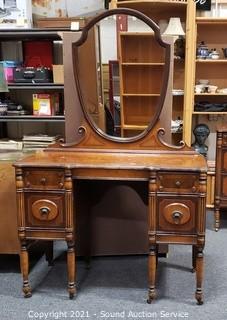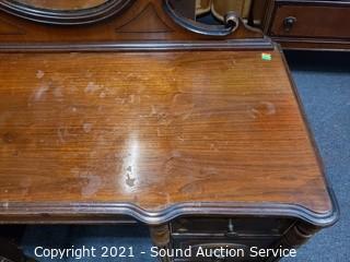 Lot #0013: Vtg. Augusta Walnut Mirrored Makeup Vanity w/Bench
