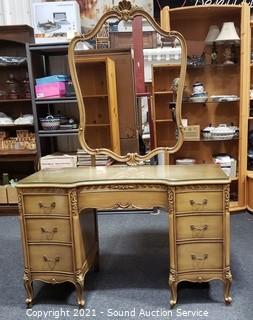 443 Lots including; Tons of Beautiful Gold, Silver & Fashion Jewelry, Handmade Poland China, Vtg. Record Albums, Vtg. Silverplate Flatware Sets, Vtg. Dish Sets, Vtg. Oil Lamps, Vtg. Drexel Cherry Bedroom Set, Mid-Century Teak Hutch, Makeup Vanity's, Pine Shelving Units, Day Bed, Antique Curio Cabinet, Cedar Chest, Ornate Marble Top Victorian Table, Artwork, Fine China, Oil & Table Lamps, Massaging Reclining Sofa w/Phone, Sheet Sets, Comforter Sets & Much More!!!
